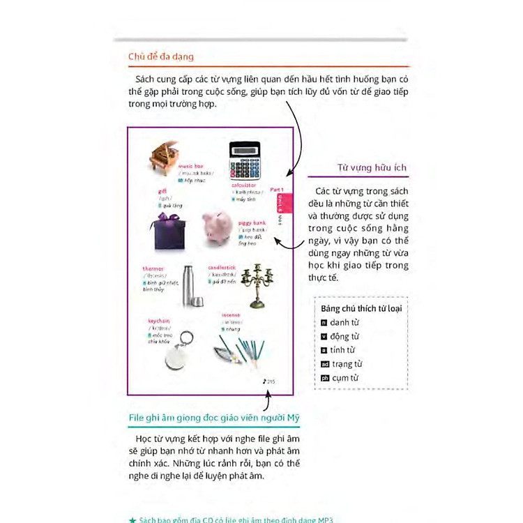 - Nội dung phong phú: Bao gồm nhiều chủ đề đa dạng và từ vựng hữu ích cho giao tiếp hàng ngày.