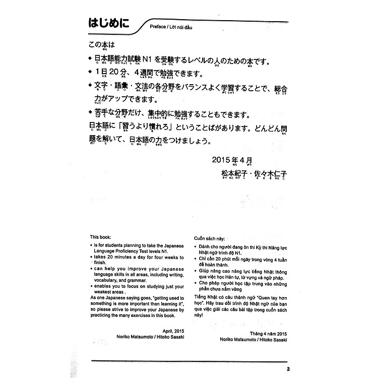 Tiếng Nhật có câu “Quen tay hơn nhanh học”. Hãy trau dồi trình độ tiếng Nhật của bạn thông qua việc thực hành các bài tập trong cuốn sách này.
