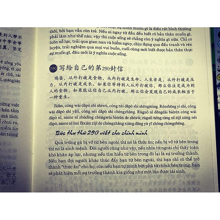 Với nền văn hóa lâu đời đặc sắc và vô cùng phong phú của Trung Quốc, ngôn ngữ Trung trở thành một ngôn ngữ được nhiều bạn trẻ trên thế giới yêu thích, trong đó có Việt Nam. Những cuốn sách song ngữ có phiên âm mang màu sắc hạt giống tâm hồn vừa giúp người học tiếng Trung nâng cao thêm vốn từ vựng, cách diễn đạt, vừa giúp họ làm mát tinh thần, chiêm nghiệm được nhiều triết lí sống chưa được ấn hành nhiều ở Việt Nam. Với mong muốn giúp những bạn trẻ yêu thích tiếng Trung nhưng trình độ chưa cao có thể tiếp cận được với những triết lí của cuộc sống cũng như phát triển được ngôn ngữ, chúng tôi xin được giới thiệu cuốn sách 999 bức thư viết cho chính bạn với phiên bản đầy đủ chữ Hán, phiên âm, tiếng Việt.