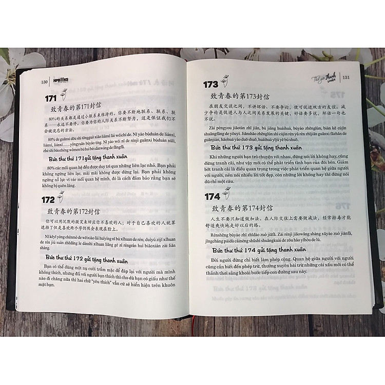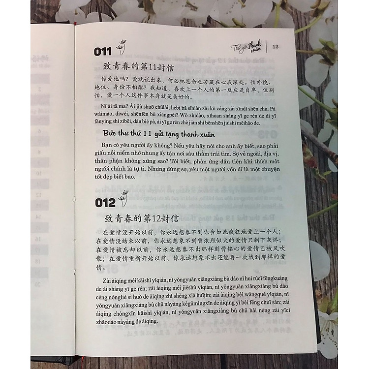 Nội dung sách:Gồm những bức thư song ngữ (Trung – Việt – Pinyin) gửi tặng thanh xuân tươi đẹp
