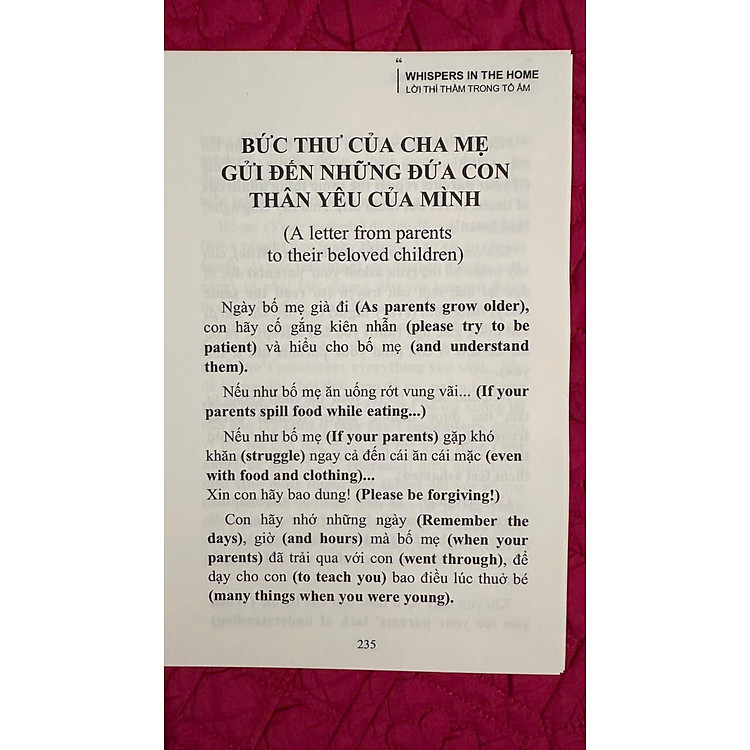 - Bộ 3 Sách Song Ngữ gồm: “Lời thì thầm trong tổ ấm”, “Lời thì thầm với cha”, “Lời thì thầm với mẹ”.