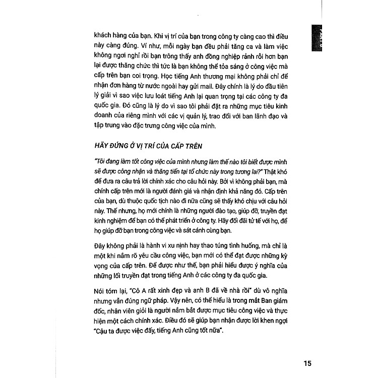 Quyển này chỉ chủ yếu là giao tiếp công sở- chứ không thiên về các hợp đồng thương mại hay viết thư. Không như quảng cáo mặt sau của sách.