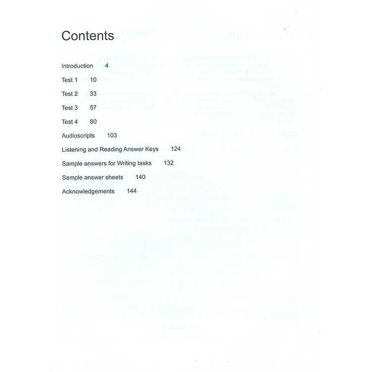 2, Bao gồm một phần hoặc toàn bộ tape scripts và câu trả lời trong bài đọc và nói, viết, cung cấp các cấu trúc, mẫu câu và cách trả lời hay mà các bạn có thể tham khảo làm phong phú thêm vốn kiến thức tiếng Anh, chuẩn bị cho kì thi IELTS một cách hiệu quả.