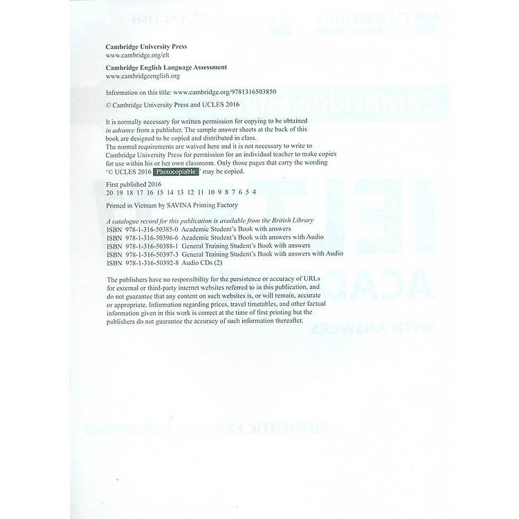 Các thông tin khác: Cambridge IELTS 11 Academic