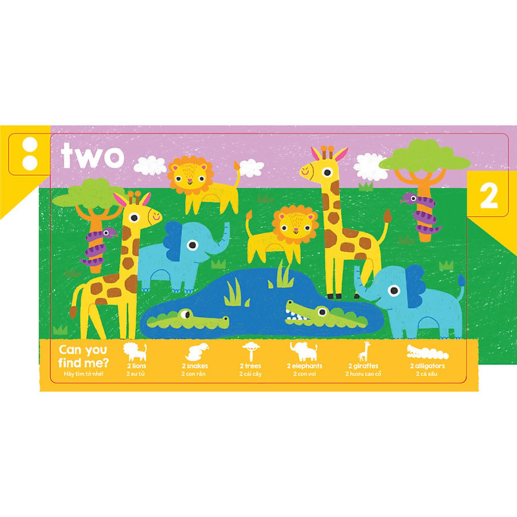 Con Số Ngộ Nghĩnh – Học Số Và Quan Sát là cuốn sách chủ đề về các chữ số đơn giản trong tiếng anh. Các bé sẽ vừa phát triển tư duy logic khi học về các con số, vừa có thể phát triển khả năng quan sát qua từng trang sách. Màu sắc tương phản, bắt mắt, rất phù hợp để bé phân biệt, nhận biết con số.