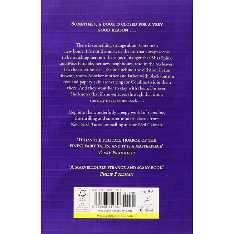 It’s not the mist, or the cat that always seems to be watching her, nor the signs of danger that Miss Spink and Miss Forcible, her new neighbours, read in the tea leaves. It’s the other house – the one behind the old door in the drawing room. Another mother and father with black-button eyes and papery skin are waiting for Coraline to join them there. And they want her to stay with them. For ever. She knows that if she ventures through that door, she may never come back.
