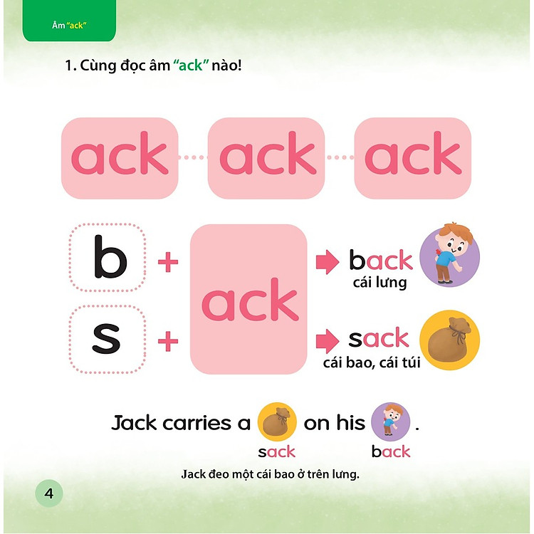 - Sách có các chủ đề từ bảng chữ cái, nguyên âm ngắn, dài đến nguyên âm ghép với phụ âm.