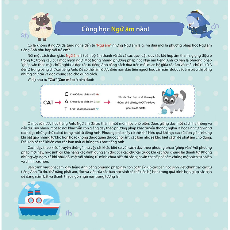 Ngữ âm là một phần rất quan trọng trong việc học ngoại ngữ nói chung và việc học tiếng Anh nói riêng, bởi vì nó chính là nền tảng để các em có thể nghe hiểu tốt, phát âm chính xác và viết đúng chính tả, từ đó giúp các em dễ dàng học các từ mới hơn và tạo tiền đề để các em phát triển đồng đều cả bốn kỹ năng nghe, nói, đọc, viết.