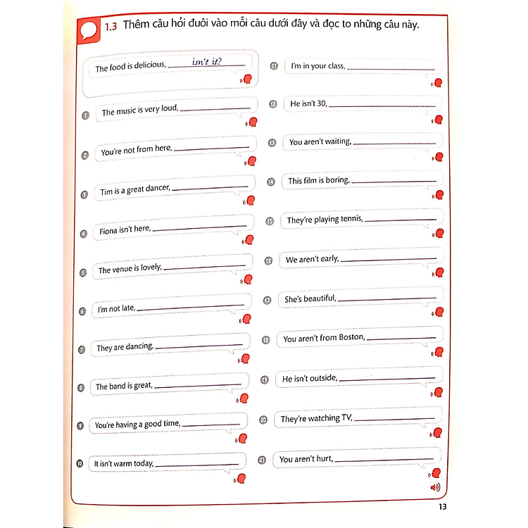 Exercises may include finding the errors in sample text messages, reading comprehension questions, fill-in-the-blanks, word order games, and listening questions.