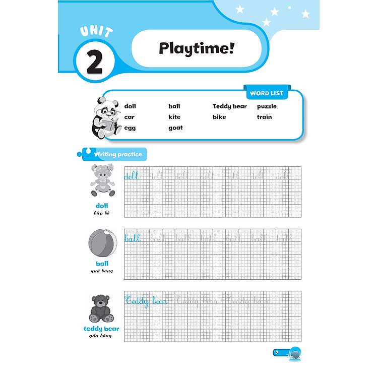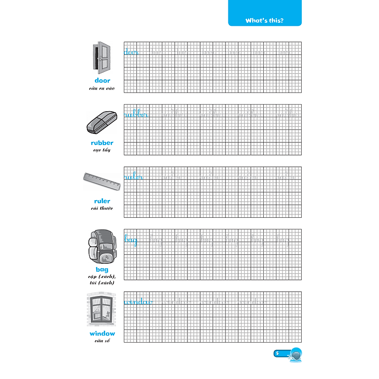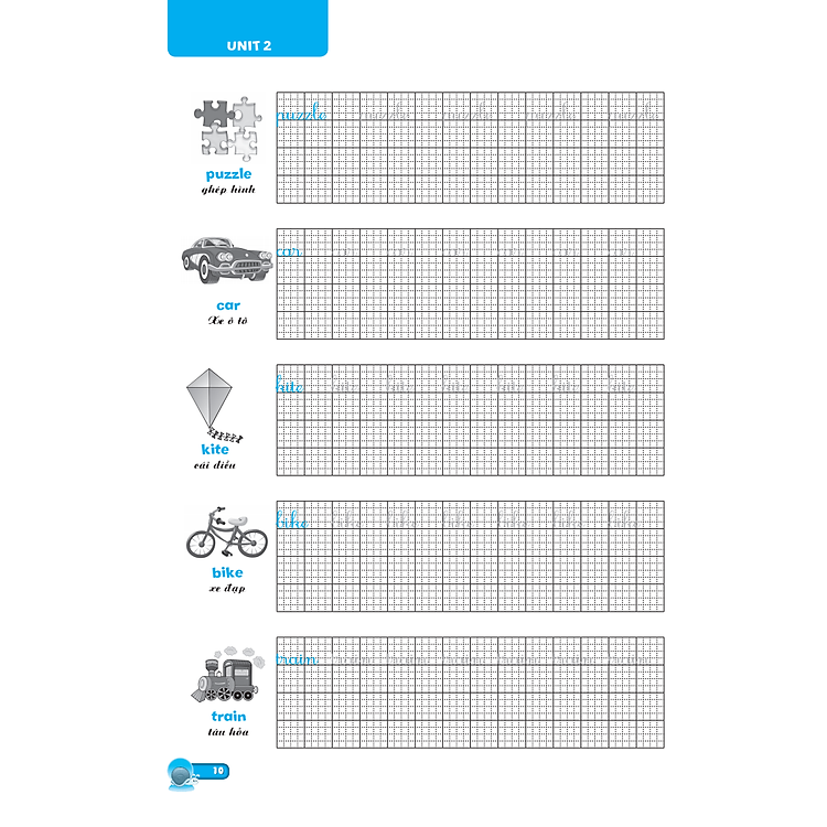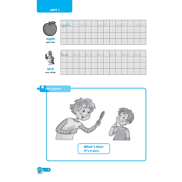 - Giúp học sinh làm quen với từ vựng tiếng Anh qua việc viết lại từ và mẫu câu.