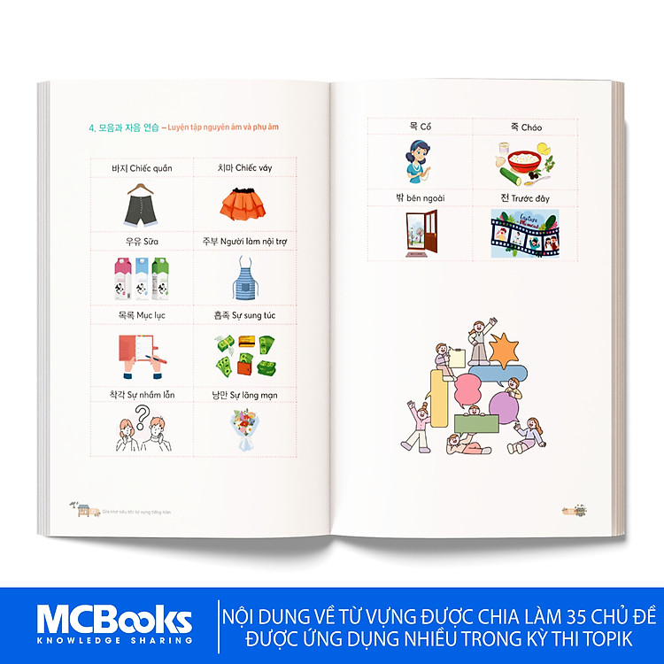 – Nội dung về từ vựng được chia làm 35 chủ đề quen thuộc và được ứng dụng nhiều trong kì thi TOPIK như: giới thiệu bản thân, gia đình, phim ảnh, phát triển bản thân,…