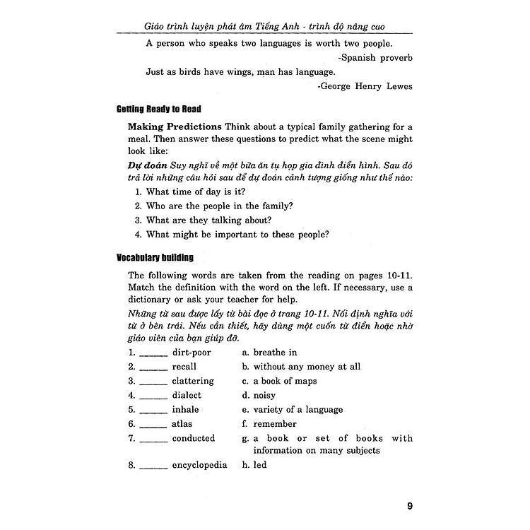 Cấu trúc cuốn sách Giáo Trình Luyện Kỹ Năng Nghe – Nói Tiếng Anh – Trình Độ Trung Cấp bao gồm 9 nội dung: