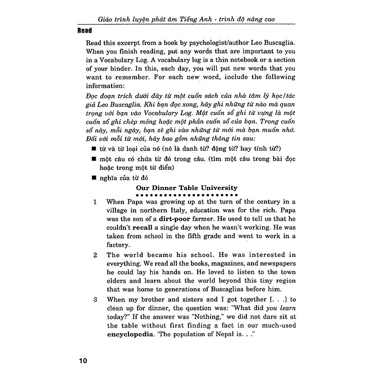 Cuốn sách sẽ giúp các luyện Nghe – Nói về những vấn đề lớn hơn chẳng hạn các cuộc hội thảo về những vấn đề như: con người, văn hóa, và tư tưởng, v.v…Bên cạnh việc rèn luyện hai kỹ năng Nghe và Nói, cuốn sách này còn giúp các bạn có thêm những nhận biết thú vị khác.