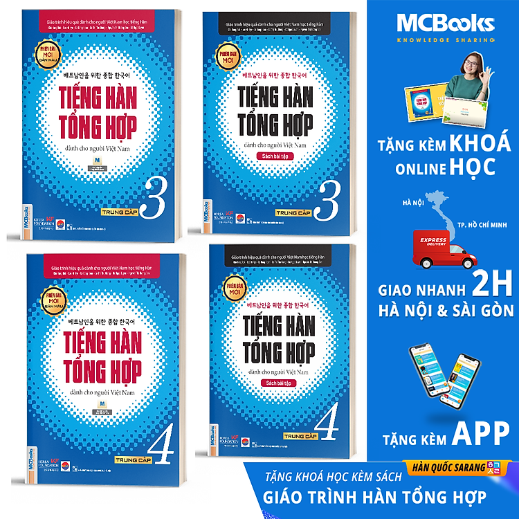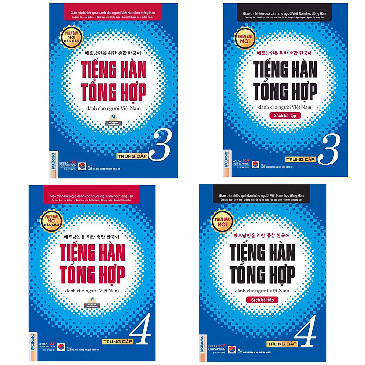 - Combo gồm 4 cuốn giáo trình tiếng Hàn tổng hợp trung cấp Tập 3 và Tập 4, bao gồm sách giáo khoa và sách bài tập.