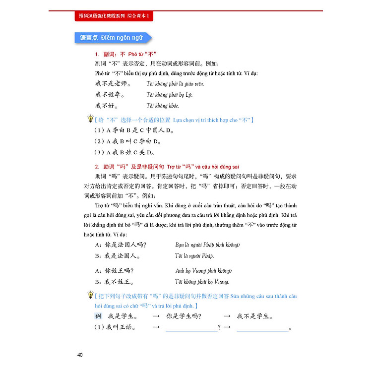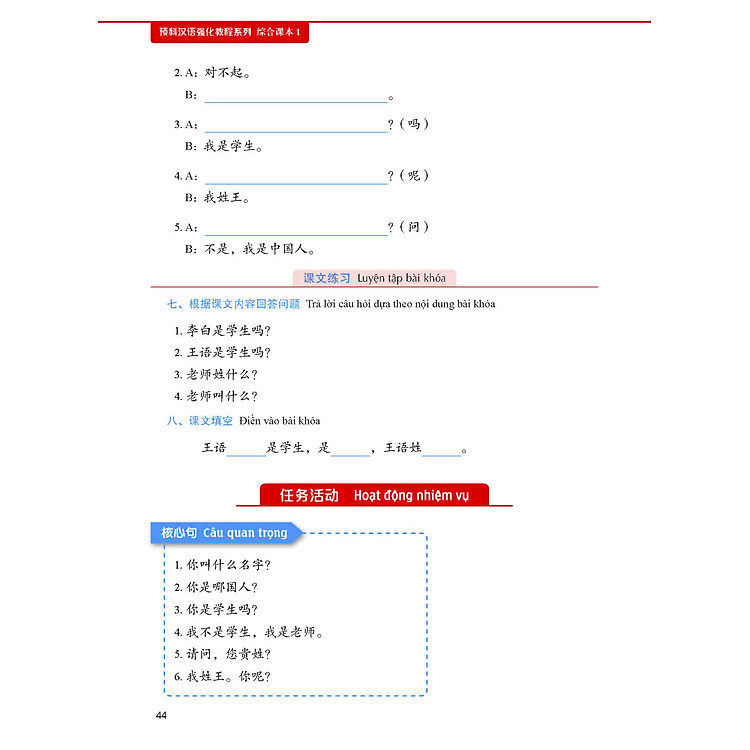 Sách – Giáo trình tiếng Trung Tăng Cường – Bài tập tổng hợp quyển 1