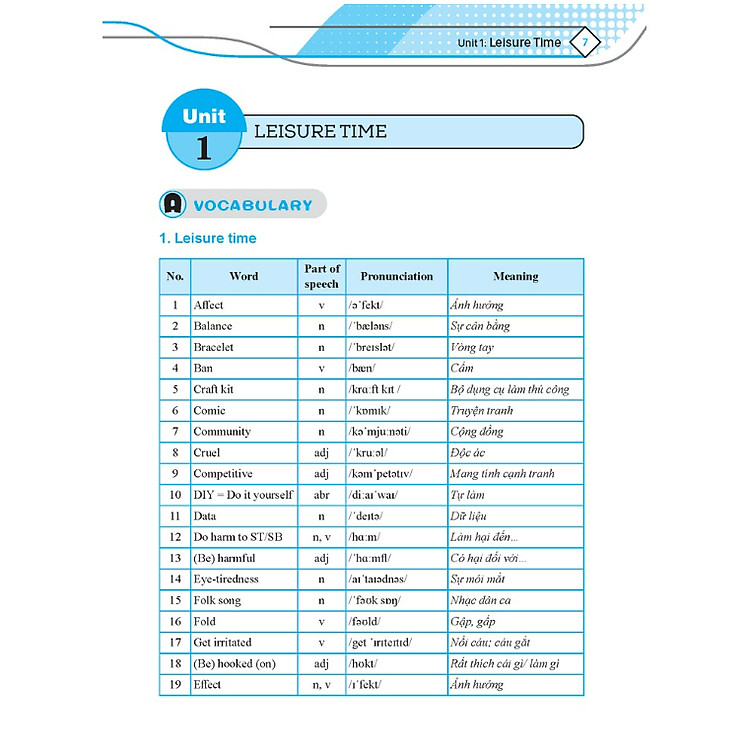 Bài tập bổ trợ và nâng cao Tiếng Anh được chia thành các đơn vị bài học bám sát chương trình mới nhất của Bộ Giáo dục và Đào tạo. Thông qua hệ thống các bài học với kiến thức bổ trợ nâng cao, cuốn sách hướng tới phát triển toàn diện kỹ năng ngôn ngữ cho các em học sinh. Đây không chỉ là tài liệu bổ trợ giúp các em củng cố kiến thức cơ bản sau các bài học trên lớp mà còn là công cụ hỗ trợ các em không ngừng mở rộng và nâng cao kiến thức. Bài tập bổ trợ và nâng cao Tiếng Anh được biên soạn với hệ thống bài tập vô cùng đa dạng. Mỗi đơn vị bài tập gồm 5 phần: I. Pronunciation (Phát âm Trọng âm) II. Vocabulary (Từ vựng): III. Grammar (Ngữ pháp ): IV. Reading (Kỹ năng đọc ) V. Writing (Kỹ năng viết) Sau mỗi đơn vị bài học là các đề kiểm tra 15 phút, kiểm tra giữa học kỳ và kiểm tra cuối học kỳ. Thông qua hệ thống đánh giá năng lực, các em có thể thử sức mình với hàng trăm câu hỏi bám sát đề trên lớp. Các bậc phụ huynh dễ dàng biết được sự tiến bộ của con em mình từng ngày