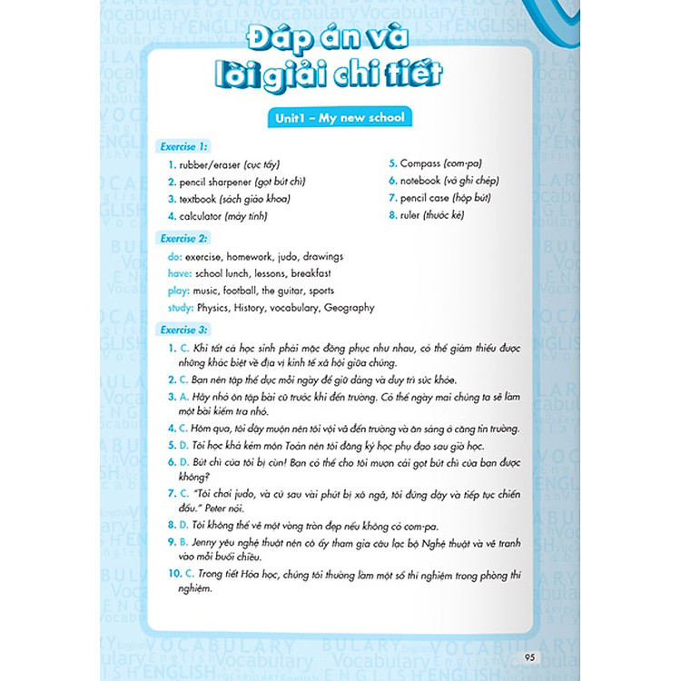 Hệ thống lời giải chi tiết và đầy đủ dịch nghĩa được trình bày rõ ràng, cụ thể không chỉ giúp các em tự đánh giá năng lực mà còn cung cấp cho các em nhiều kiến thức hữu ích để nâng cao hiểu biết.