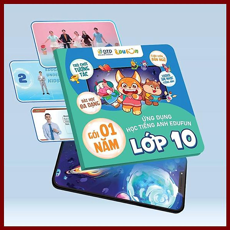 - Gói Edufun Premium Level 10 bao gồm thẻ học tiếng Anh, sách học sinh, sách bài tập và 2 cuốn truyện.