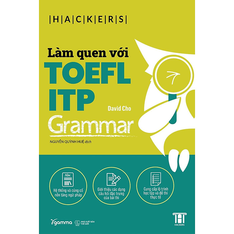Làm quen với TOEFL ITP Grammar – là cuốn sách học ngữ pháp nằm trong bộ sách: Làm quen với TOEFL ITP – do Gamma xuất bản. Đúng như tên gọi, cuốn sách dành cho người mới bắt đầu học tiếng Anh với mong muốn trau dồi kiến thức từ cơ bản đến nâng cao để có thể chinh phục những bài thi học thuật, đặc biệt là bài thi TOEFL ITP. Cuốn sách được sắp xếp khoa học, với 18 chương bài học được chia thành 4 phần: cấu trúc câu, từ loại, cụm từ và mệnh đề, và cấu trúc ngữ pháp, sẽ giúp người học nắm bắt hệ thống ngữ pháp một cách chính xác và tự củng cố kiến thức đã học thông qua các câu hỏi và bài tập đa dạng đi kèm. Bên cạnh các kiến thức về ngữ pháp, sách còn khai thác và phân tích các câu hỏi thường xuyên xuất hiện trong bài thi, tổng hợp các lỗi sai mà người học có thể gặp phải ở bài thi thực tế. Ngoài ra, ở cuối sách sẽ là phần đáp án, dịch nghĩa, giải thích chi tiết các dạng câu hỏi để người học tự kiểm tra kiến thức của bản thân.