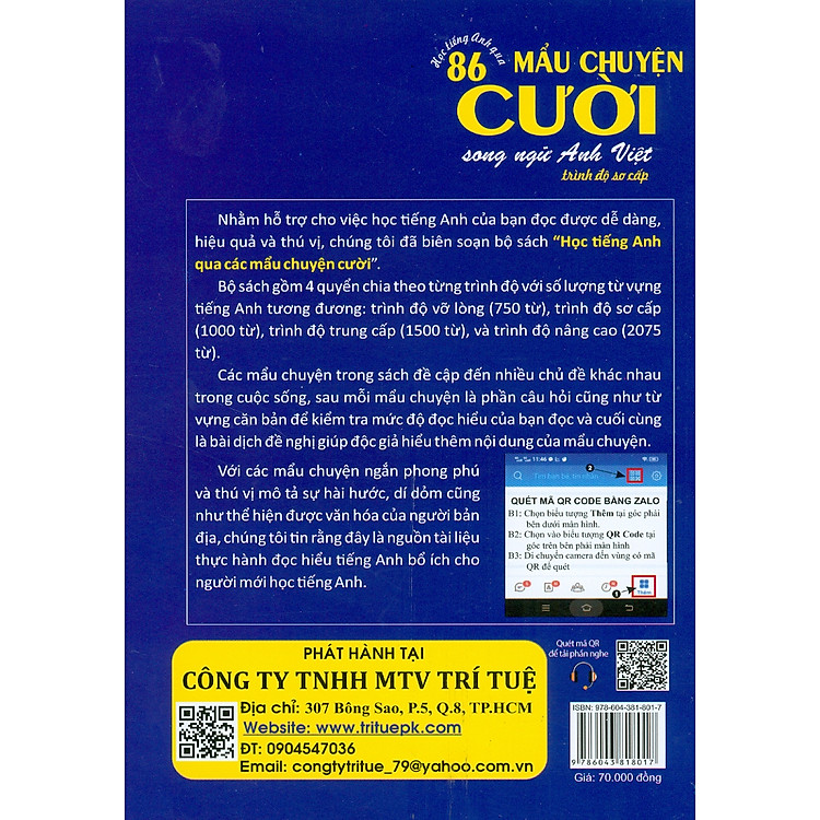 - Tựa đề: Mua Học Tiếng Anh Qua 86 Mẩu Chuyện Cười Song Ngữ Anh – Việt