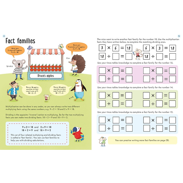 Helped by a group of friendly animals, children can develop their dividing skills and learn the methods of partitioning and short division. The activities in this book build children’s confidence in using related multiplying facts to answer dividing questions in real-life contexts.
