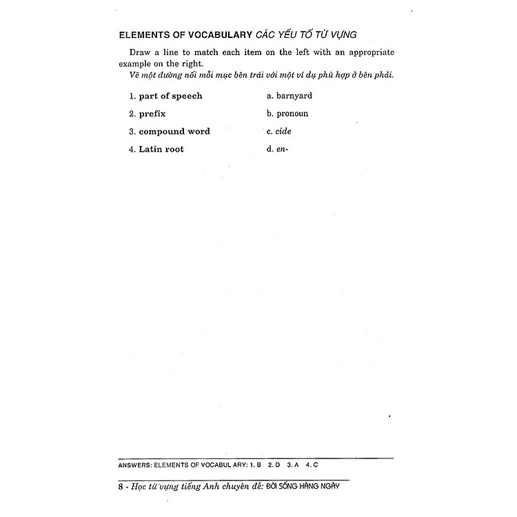 Các bài tập tiếp theo sẽ giúp bạn dần dần hiểu rõ ý nghĩa của các từ mới thông qua nhiều hoạt động thực hành đa dạng như từ đồng nghĩa và từ trái nghĩa; hình thức từ; gốc từ, tiền tố và hậu tố, nghĩa rộng của từ; hoàn thành suy luận; cùng nhiều kỹ năng tăng cường khác.