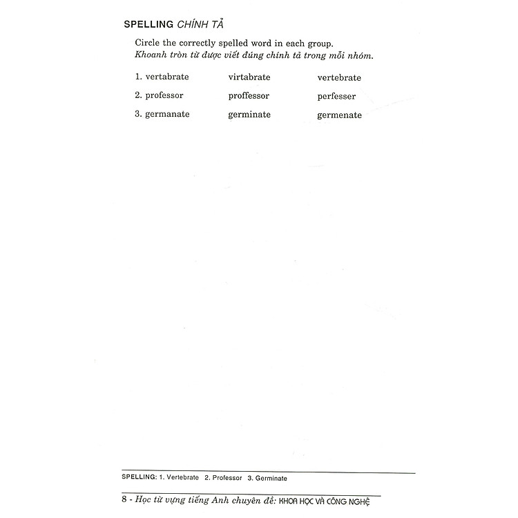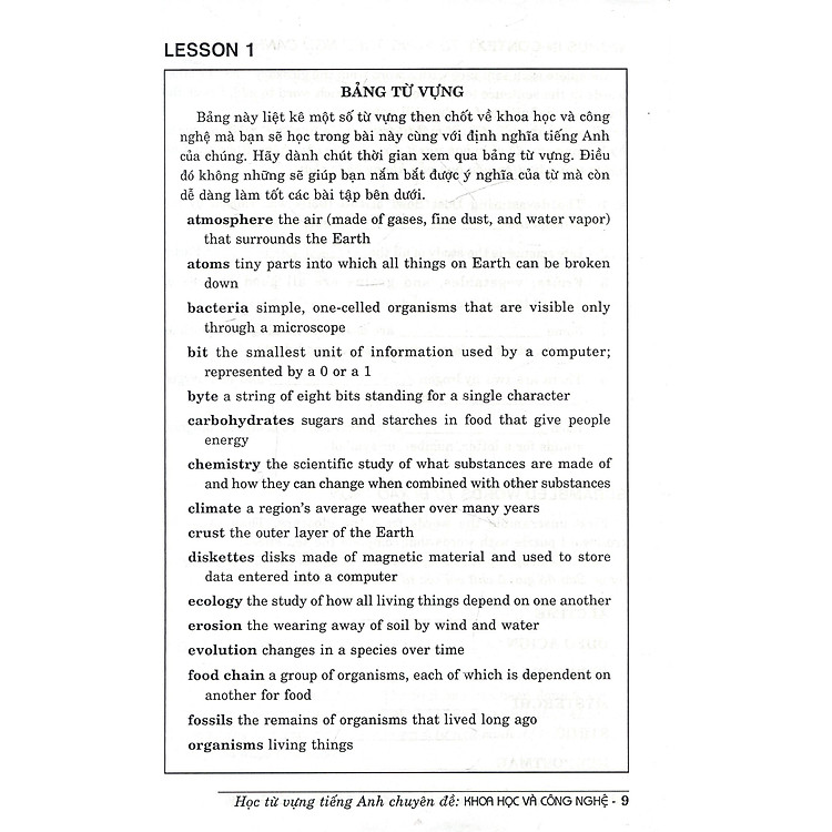 Học Từ Vựng Tiếng Anh Chuyên Đề Khoa Học & Công Nghệ Bộ sách “Học Từ Vựng Tiếng Anh Chuyên Đề” được biên soạn đặc biệt dành cho bạn, những người yêu thích môn tiếng Anh và muốn sử dụng tiếng Anh làm công cụ giao tiếp trong công việc hoặc trong các cuộc giao lưu thông thường. Bộ sách gồm 5 quyển, được thiết kế với hàng trăm bài tập về từ vựng nhằm giúp bạn mở rộng vốn từ ở nhiều lĩnh vực như Lịch sử và Địa ; Âm nhạc, Nghệ thuật và Văn học; Nơi làm việc và Nghề nghiệp; và Đời sống hằng ngày.