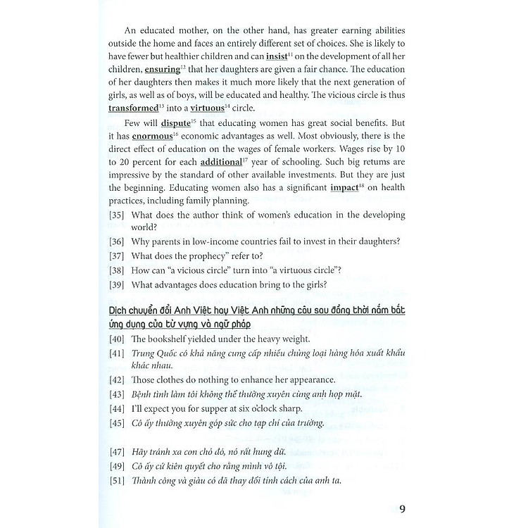 Tuy nhiên, nên học từ vựng tiếng Anh như thế nào cho hiệu quả? Bộ sách này xin giới thiệu đến bạn cách học từ vựng tiếng Anh theo chủ đề. Dựa vào từng chủ đề, cách phân tích ý nghĩa tương đương, cũng như dựa vào từ gốc, người học sẽ không chỉ dễ dàng ghi nhớ các từ chính trong bài đọc, mà qua đó còn hiểu được cách vận dụng linh hoạt các từ vựng đó vào từng ngữ cảnh giao tiếp.