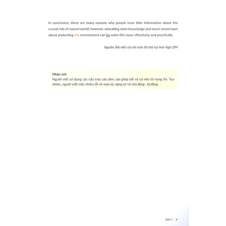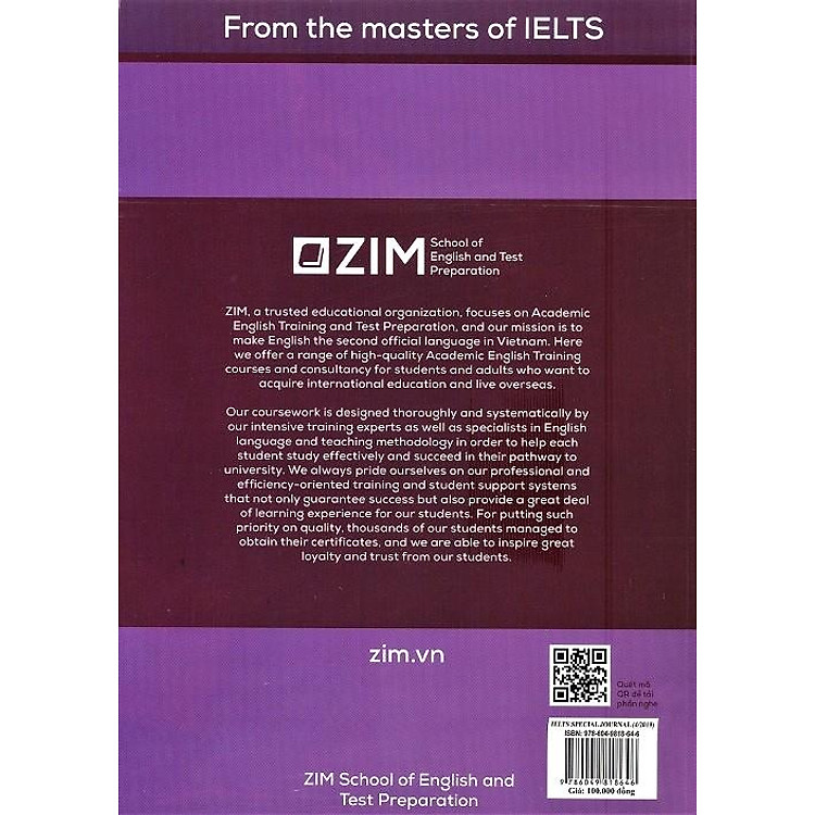 IELTS Special Journal là ấn phẩm được đội ngũ chuyên gia luyện thi IELTS tại Anh Ngữ ZIM biên soạn với mục đích giúp người học có cái nhìn cận cảnh hơn về độ khó của đề thi kỹ năng Nói và Viết cũng như cung cấp nhiều phương án xử lý các đề thi cụ thể qua việc phân tích đề và lập dàn ý. Nội dung chính của sách bao gồm: