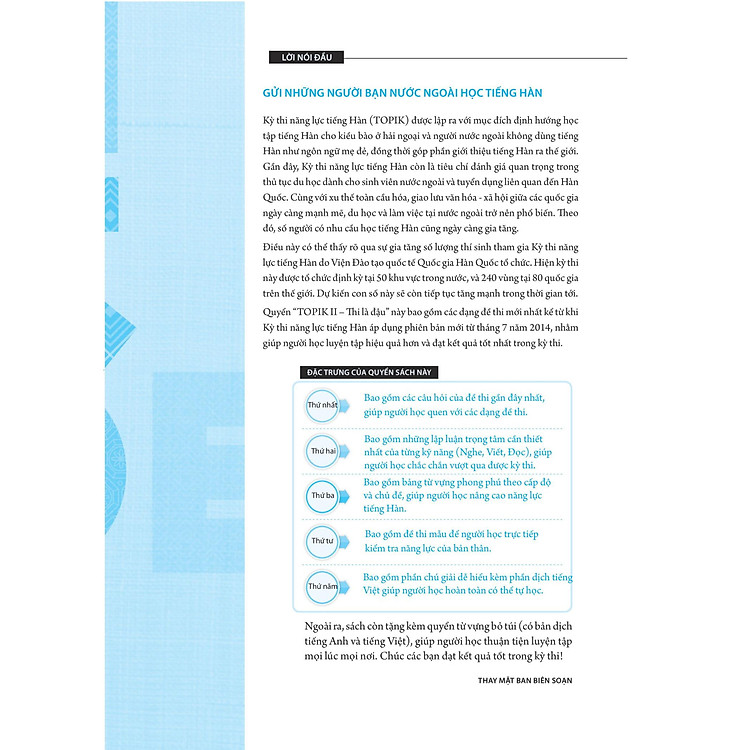 - Giáo trình “TOPIK II – Thi là đậu” được cập nhật mới nhất về kỳ thi TOPIK II.