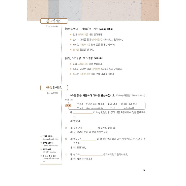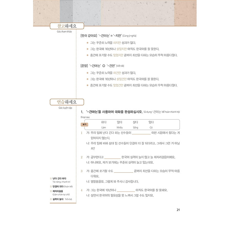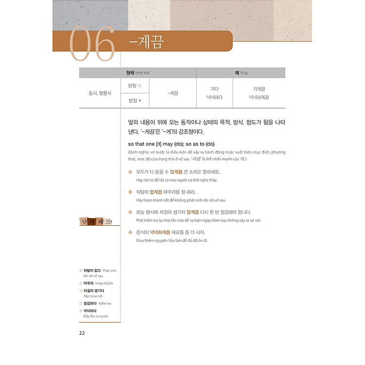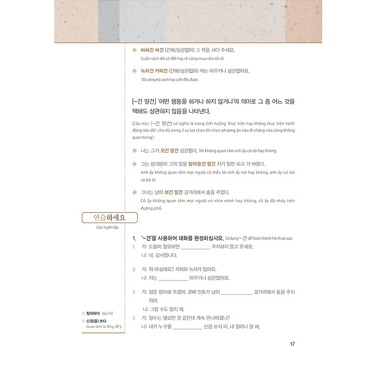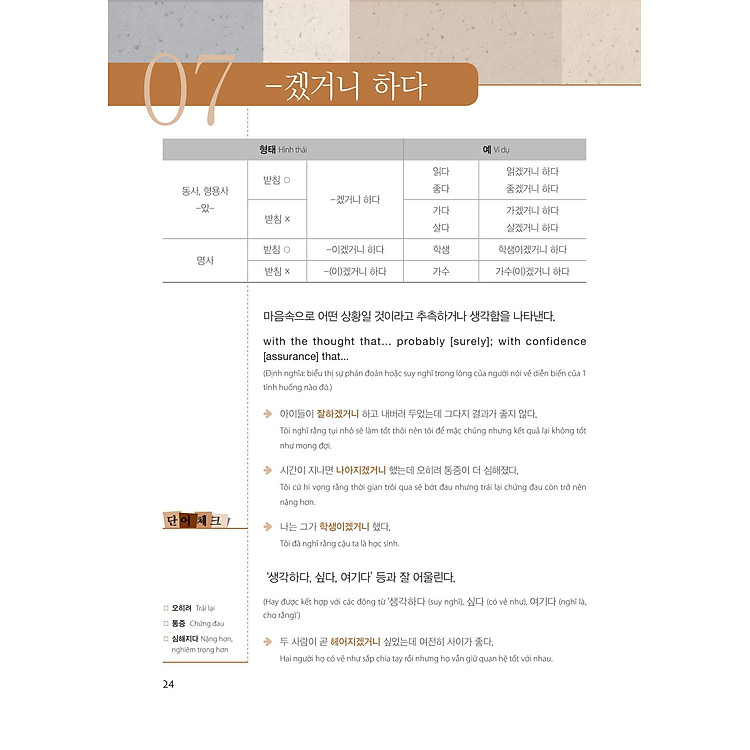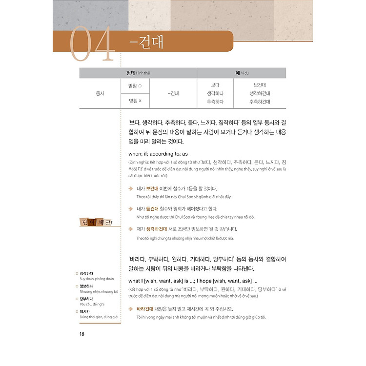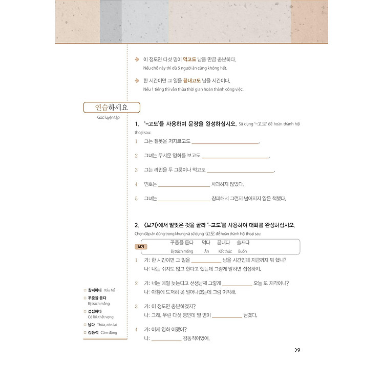 Cung cấp kho từ vựng, ví dụ đa dạng, cũng như các dạng bài tập điển hình giúp người học làm quen chính xác ý nghĩa và cách sử dụng tiếng Hàn