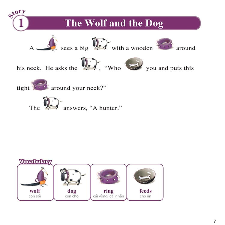 • Learn English With Fables 6 – Học Tiếng Anh Qua Truyện Ngụ Ngôn Tập 6: The Wolf And The Dog – Sói Và Chó