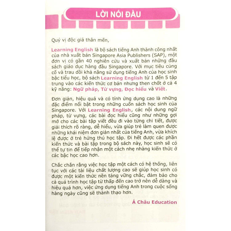 – Trọn bộ 5 cuốn từ 1-5, vì sách TA dành cho các bạn nhỏ Singapore – đất nước sử dụng TA là ngôn ngữ chính, nên ở Việt Nam bố mẹ lựa theo khả năng của các con nữa nhé. Bởi ai cũng biết tính thách đố trong các đầu sách của Singapore khá cao.