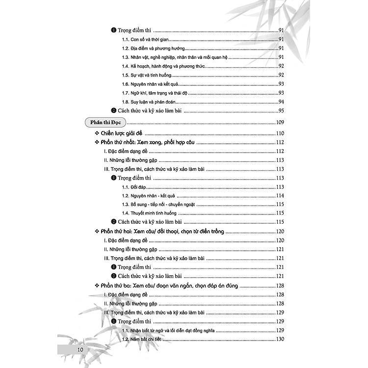 III. Trọng điểm thi, cách thức và kỹ xảo làm bài: Đây là phần quan trọng nhất của tài liệu Phần trọng điểm thi giới thiệu những trọng tâm mà dạng đề thi tập trung vào. Liên quan đến trọng điểm thi này, chúng tôi đã hệ thống hóa các điểm ngôn ngữ, công thức hóa các cấu trúc ngữ pháp cũng như tập hợp các từ ngữ có liên quan.