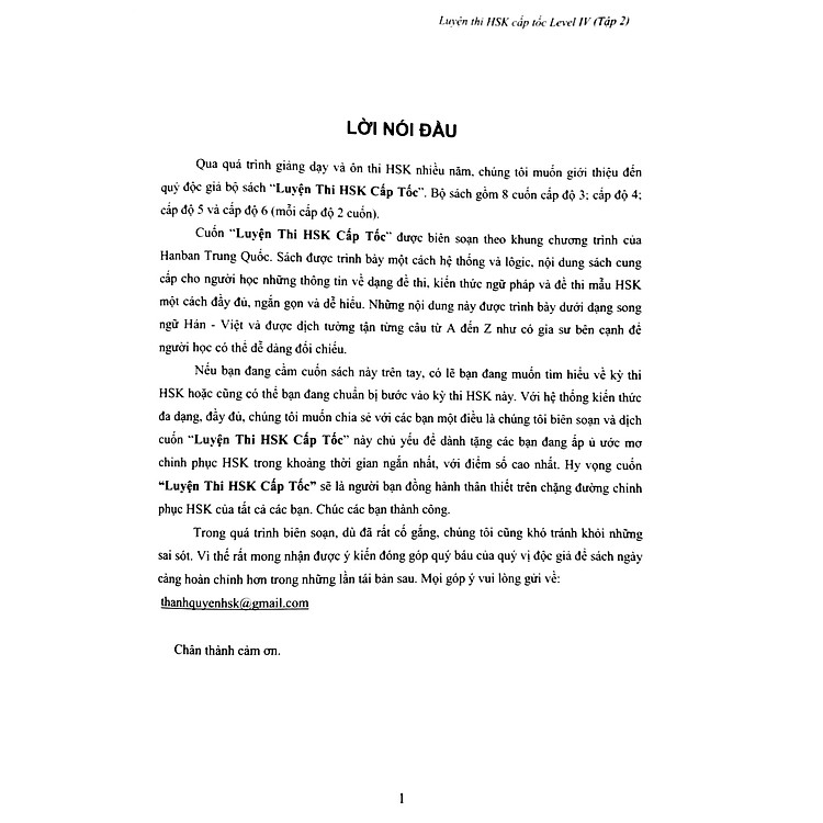 - Cuốn sách “Luyện Thi HSK Cấp Tốc” là tài liệu song ngữ đầu tiên trên thị trường, biên soạn theo chương trình của Hanban Trung Quốc.