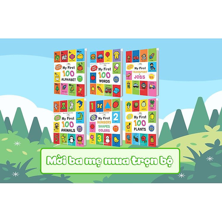 - Bộ sách gồm 6 cuốn: 100 con vật đầu tiên, 100 từ đầu tiên, 100 từ đầu tiên về con số, hình dạng và màu sắc, 100 từ về bảng chữ cái tiếng Việt, 100 từ về phương tiện giao thông và nghề nghiệp và 100 từ về thực vật.
