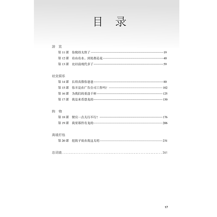 Cả bộ giáo trình lấy ngữ cảnh thực tế kích thích hứng thú học tập của người học dựa theo sáu yếu tố: mặc, ăn, ở, đi lại, mua sắm, giải trí, lựa chọn những ngữ cảnh giao tiếp điển hình, để người học đặt mình vào những hoạt động nhiệm vụ cụ thể, thông qua học tập, để người học có thể dần dần tiếp cận ngôn ngữ.