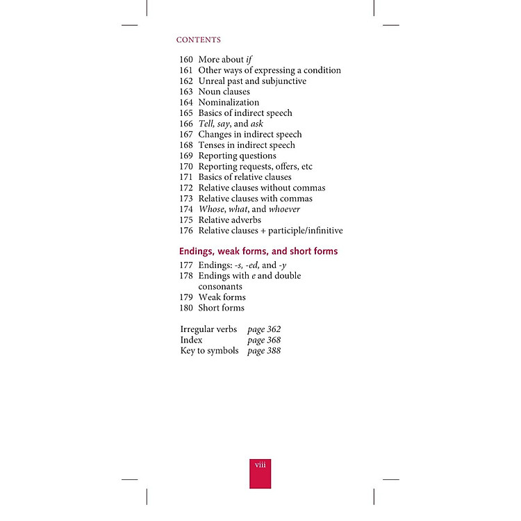 cuốn sách nhỏ gọn này là “ ngữ pháp” dành cho người học tiếng anh ở mọi trình độ. từ các thì cơ bản, câu điều kiện, bị động đến cấu trúc phức tạp hơn tất cả đều được trình bày rõ ràng, dễ hiểu, đi kèm ví dụ minh họa súc tích, dễ ghi nhớ. không quá dài dòng, chỉ tập trung vào những gì bạn cần biết, cần hiểu và cần nắm chắc