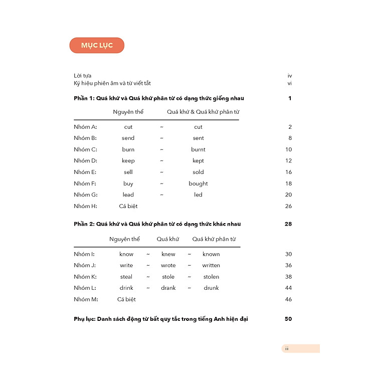 - Bao gồm phụ lục liệt kê đầy đủ các động từ bất quy tắc hiện đại, loại bỏ từ lỗi thời.