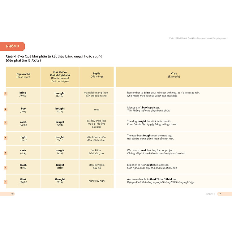 - Các động từ được sắp xếp theo khuôn thức, giúp người học dễ nhớ hơn, thay vì theo thứ tự bảng chữ cái.