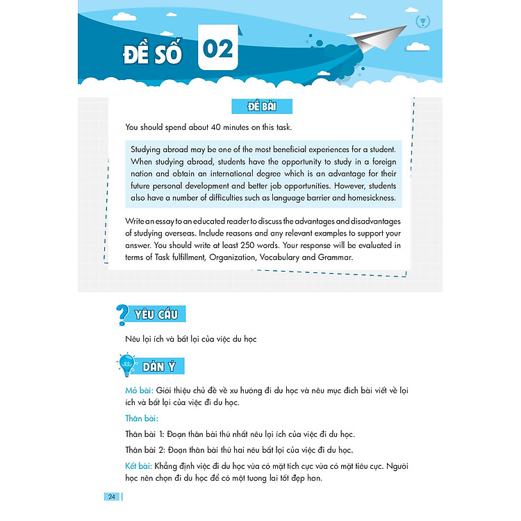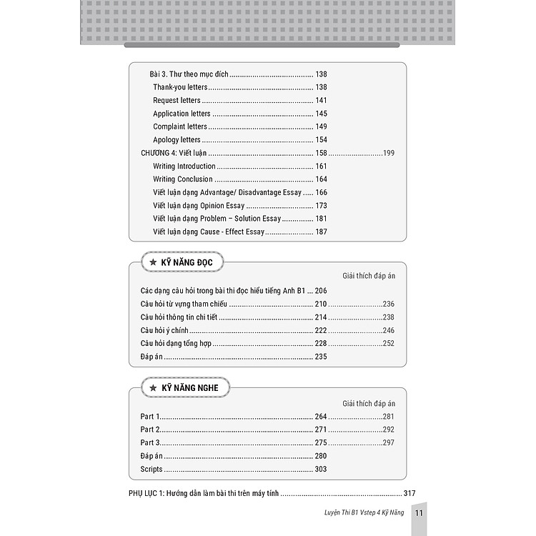 - Kỹ năng Viết: Hướng dẫn viết thư và luận với cấu trúc bài viết, bài mẫu và đề bài thực hành.