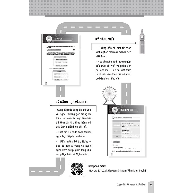 - Kỹ năng Viết: hướng dẫn chi tiết cách viết các dạng viết thư, viết luận thường gặp trong kỳ thi Vstep thông qua bổ trợ từ vựng thiết yếu, cấu trúc bài viết, bài viết mẫu và đề bài thực hành viết.