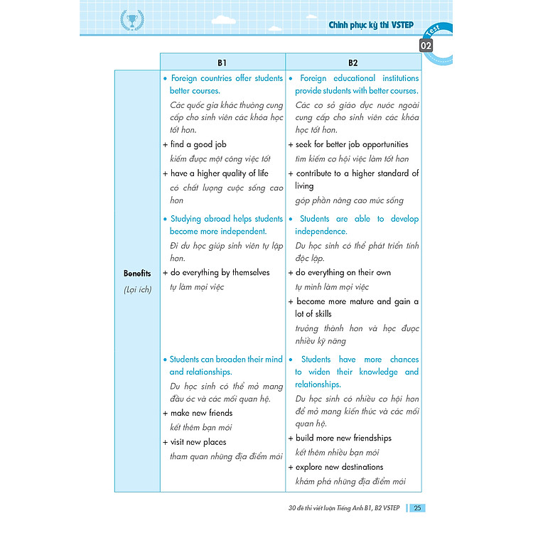 - Combo 2 sách luyện thi B1 Vstep bao gồm: Sách luyện thi B1 Vstep 4 kỹ năng và Sách 30 đề thi viết luận tiếng Anh B1, B2.