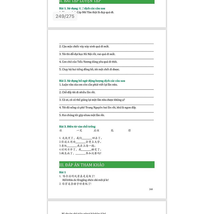+ Phần 4: Sau khi phân tích tỉ mỉ từng điểm ngữ pháp, cuốn sách đã thiết kế phần bài tập đa dạng bao gồm: dịch trung việt, việt trung, chữa lỗi sai, điền từ vào chỗ trống, sắp xếp câu, đảm bảo cho người học hiểu rõ và ứng dụng được 100% điểm ngữ pháp.