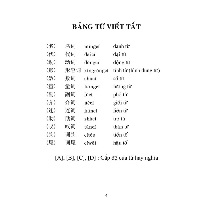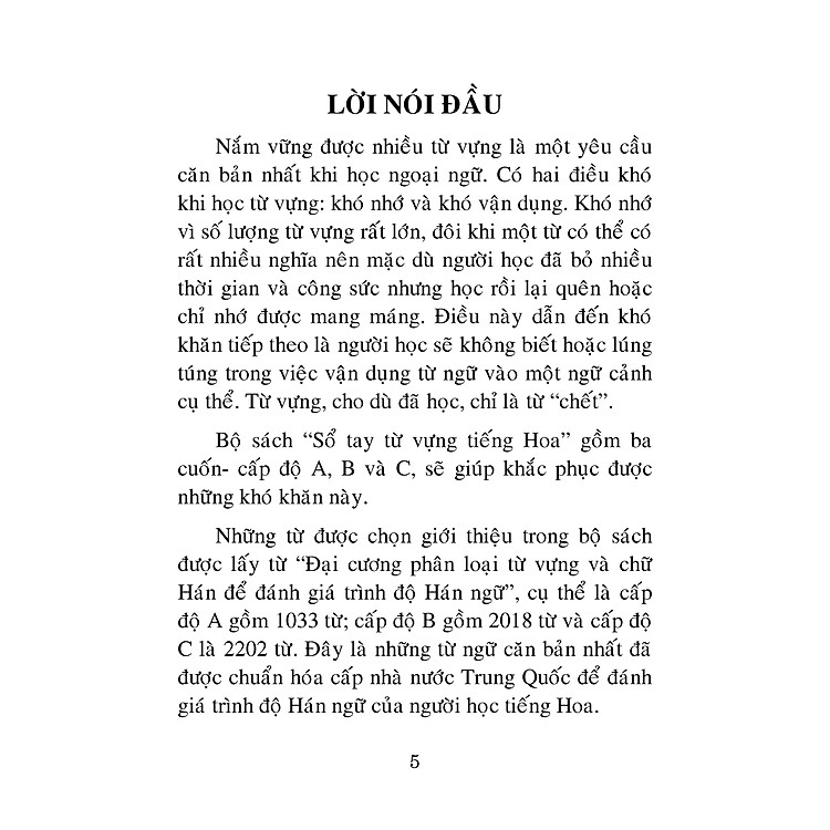 - Bộ sách “Sổ tay từ vựng tiếng Hoa” gồm 3 cấp độ: A, B, C.