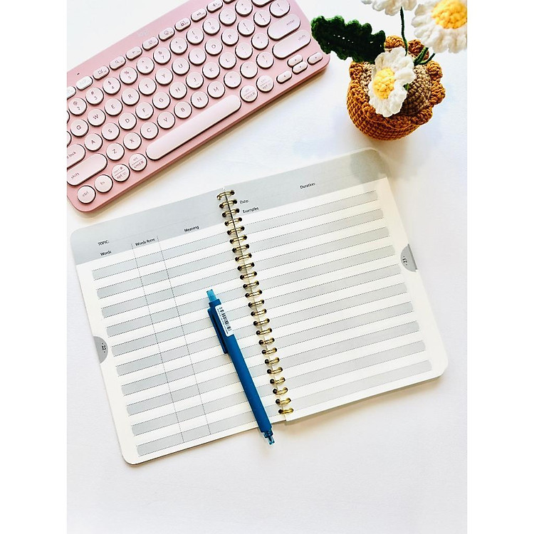 - Sổ tay từ vựng gáy lò xo, dễ dàng mang theo và ghi chú.