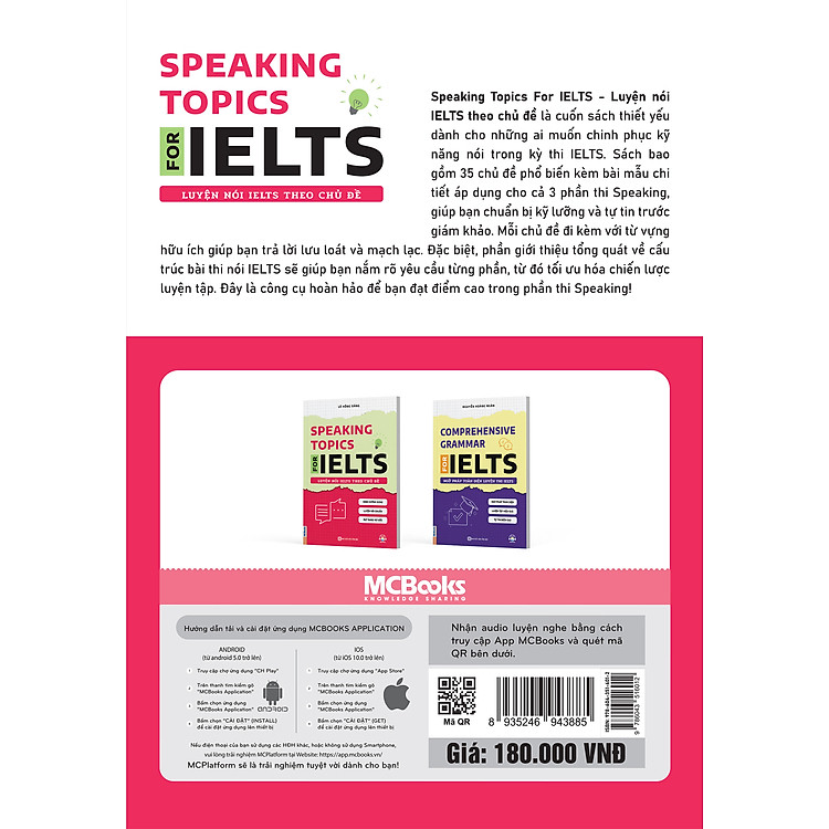Bạn có muốn tự học ngoại ngữ? Nếu vậy, SPEAKING TOPICS FOR IELTS – LUYỆN NÓI IELTS THEO CHỦ ĐỀ chính là tài liệu giúp hành trình học của bạn dễ dàng hơn. Ngay tại đây, mình đã liệt kê đầy đủ ưu đãi của SPEAKING TOPICS FOR IELTS – LUYỆN NÓI IELTS THEO CHỦ ĐỀ. Bên cạnh đó là so sánh giá để bạn dễ dàng sở hữu.