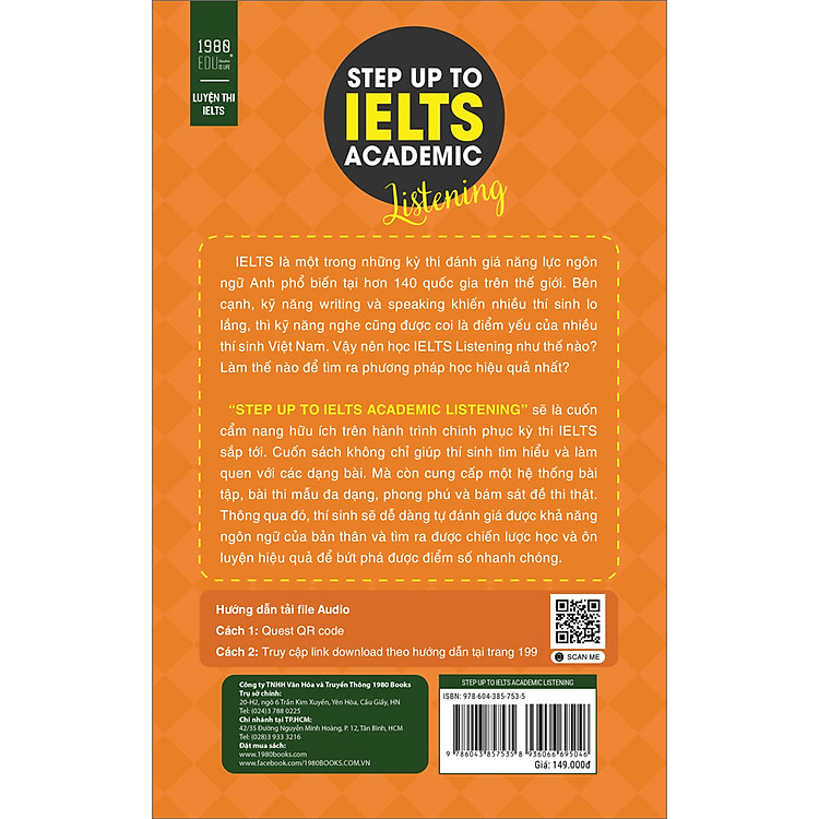 Cuốn sách “Step Up To IELTS Academic LISTENING” nằm trong bộ sách “Step up to IELTS Academic” là bộ sách gồm bốn kỹ năng “listening/ speaking/ reading/ writing” được cô đọng kiến thức và hỗ trợ tối đa cho thí sinh trong việc làm quen dạng đề và nhận diện dạng bài. Đặc biệt là định hình và xây dựng thói quen, phương pháp học tập hiệu quả để hệ thống kiến thức, dành cho người mới bắt đầu và muốn ôn luyện chuyên sâu; tổng hợp đầy đủ nhất các dạng bài trong đề thi IELTS. Thí sính sẽ dễ dàng nắm bắt được trọng điểm kiến thức để học nhanh nhớ lâu. Hệ thống bài mẫu và ví dụ minh họa chi tiết giúp thí sinh dễ dàng hiểu và tránh được những lỗi sai thường gặp trong quá trình làm bài. Các mẹo hay, tips nhỏ giúp thí sinh có thêm kinh nghiệm khi chinh phục từng kỹ năng của bài thi IELTS. Bên cạnh việc cô đọng kiến thức, bộ sách còn giúp các thí sinh nâng cao vốn từ vựng hay làm quen với cách tính điểm, tiêu chí chấm của giám khảo để từ đó có chiến lược học tập thích hợp. Hệ thống bài tập, bài thi mẫu đa dạng nhiều chủ đề giúp thí sinh đa dạng hơn trong cách viết, rèn luyện kỹ năng nghe chuyên sâu, đọc hiểu nhanh hay xây dựng lập luận chặt chẽ đối với kỹ năng nói, thông qua đó tự đánh giá được năng lực ngoại ngữ của bản thân để có chiến lược học tập hiệu quả hơn.