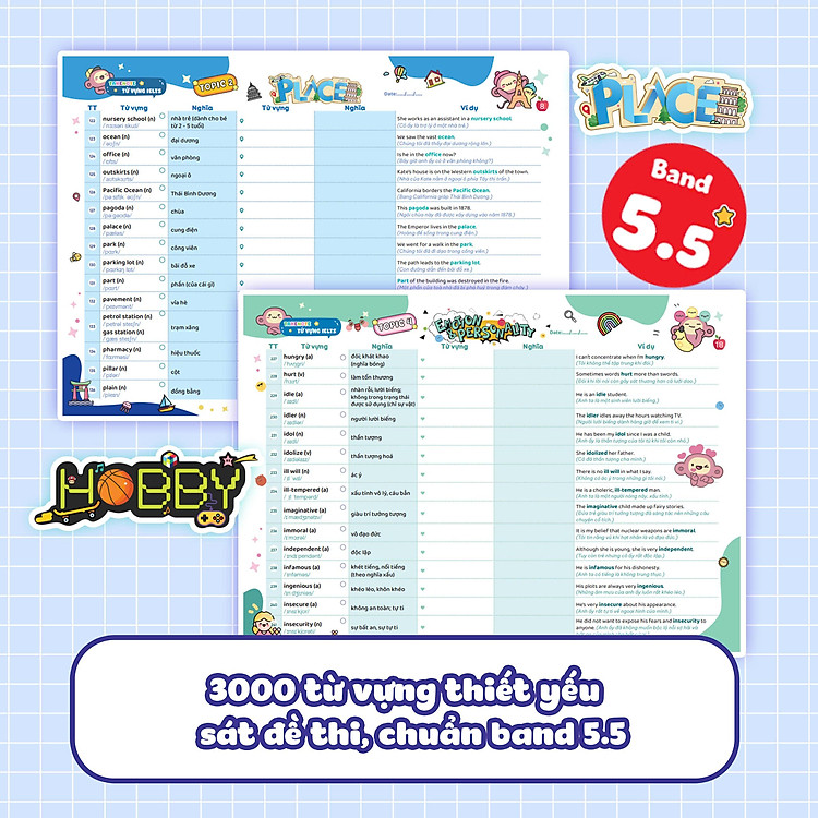 Kho từ vựng 3000 từ chuẩn band 5.5: Từ vựng được chọn lọc kỹ càng, phù hợp với người mới học hoặc đang ở trình độ dưới 5.0. Đây là vốn từ nền tảng giúp bạn dễ dàng nâng cấp khả năng tiếng Anh học thuật và giao tiếp.