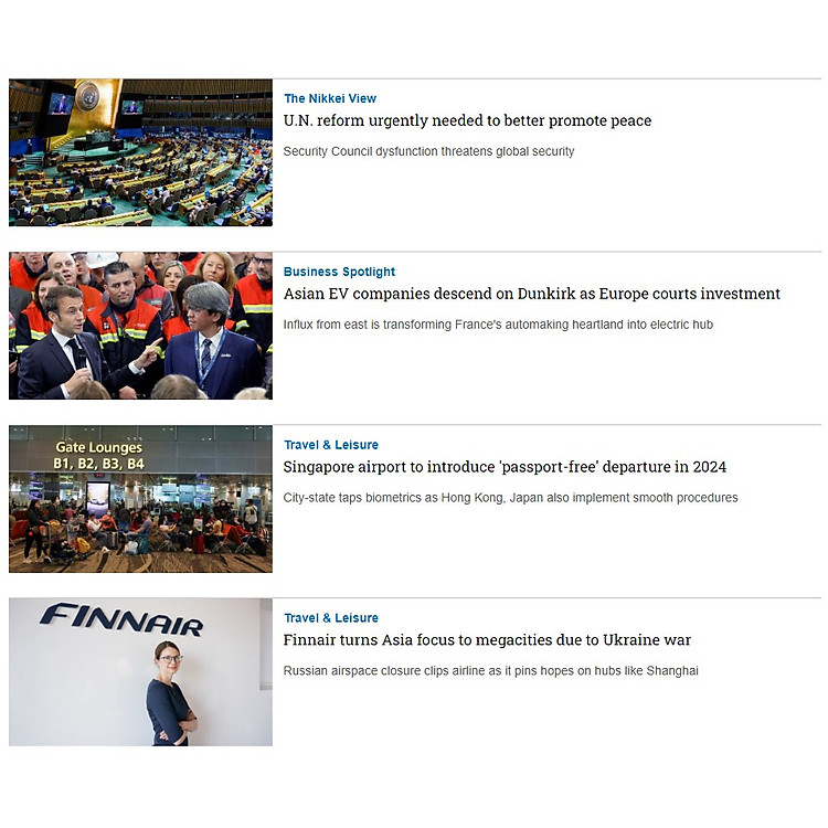 - Tạp chí Tiếng Anh Nikkei Asia 2023 chuyên về kinh tế, công nghệ, và chính trị khu vực châu Á – Thái Bình Dương.